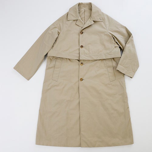 車いすには長い丈のコートは不向き。「立っていても座っていても着られるロングコートを市販品で」。そんな想いで、リメイクを得意とする進化型古着屋「森」とコラボして制作したコートです。