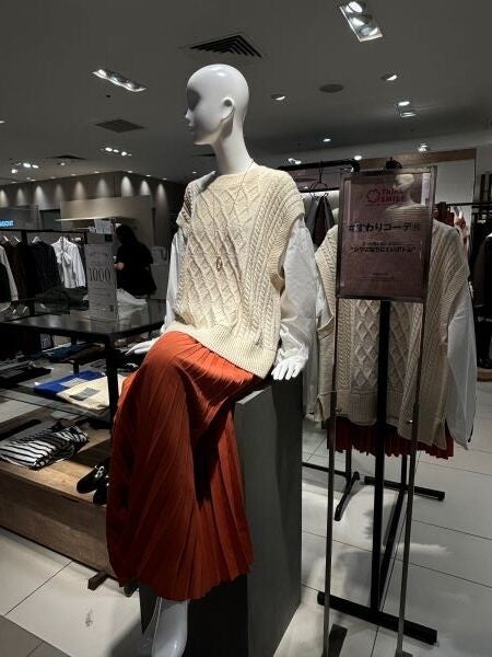 立ち姿のディスプレイが多い百貨店の売場。大丸梅田店婦人服売場では、改めて「座った時のファッションスタイル」を特集します。