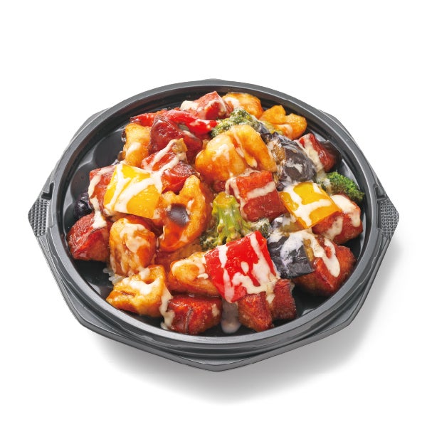 ローストポーク、彩り野菜を甘辛ソースで和えた洋のどんぶり。
