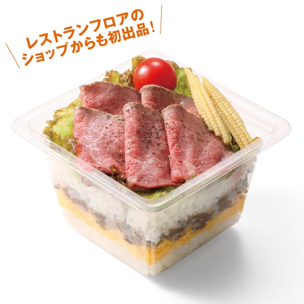 ステーキ〈三田屋本店-やすらぎの郷-〉ローストビーフ&牛しぐれのミルフィーユ丼(12.5cm角)税込1,300円 <各日限定数30>