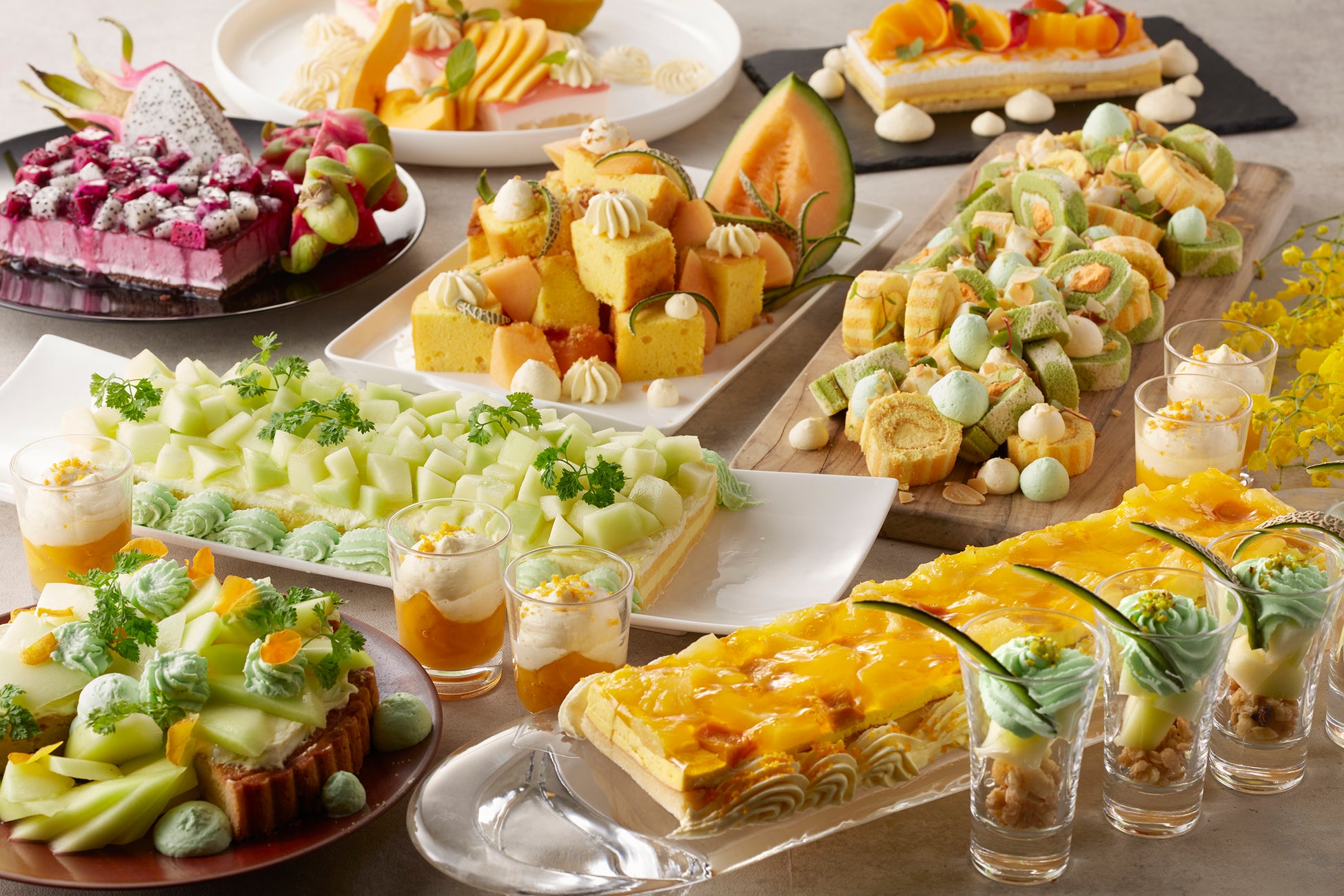 旬のメロンやマンゴーを贅沢に使用したデザートブッフェを堪能。自分好みのオリジナルコースを楽しむご褒美ランチ