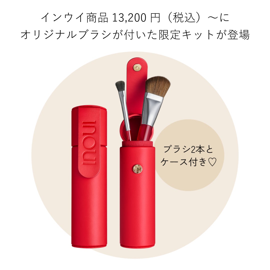 資生堂オンラインストアにてインウイ商品から13,200円以上(税込)以上お選びいただくと、「インウイ オリジナルブラシセット*2」が付くキットとして販売します。