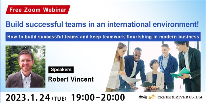 株式会社クリーク・アンド・リバー社(C&R社)は2023年1月24日(火)、グローバルに活躍したい方々を対象に、無料のオンラインセミナー「国際的な環境で成功するチームビルディング ~現代のビジネスで成功するチーム作りとチームワークを継続させる方法~」を開催いたします。