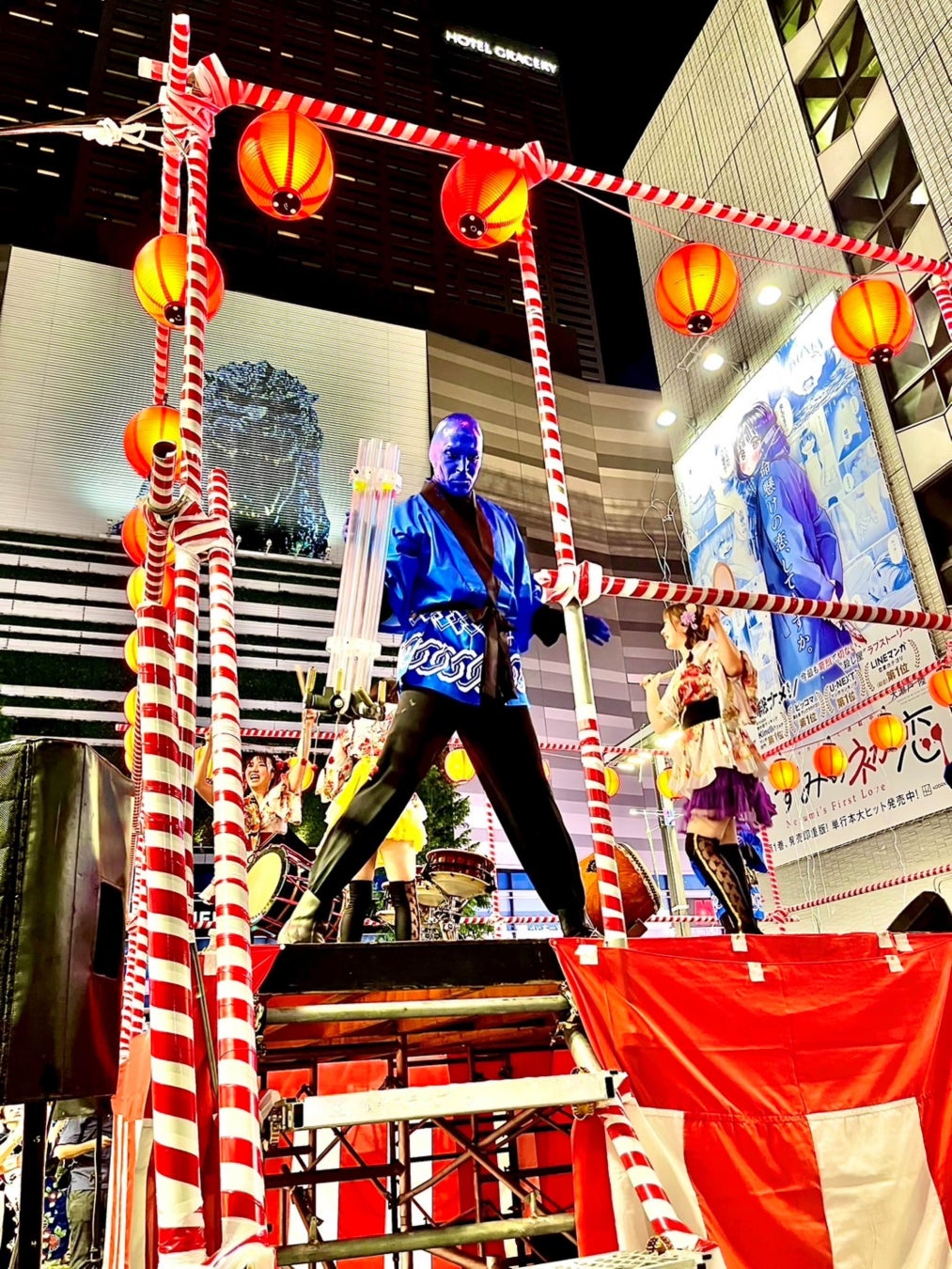 今回のジャパンツアーでは、ベルーナドームでの始球式出演、歌舞伎町盆踊り大会への乱入、NHK「あさイチ」出演時に「放送事故」としてYahoo!ニュースに掲載されるなど、ブルーマンならではの劇場外での活動も話題となりました。