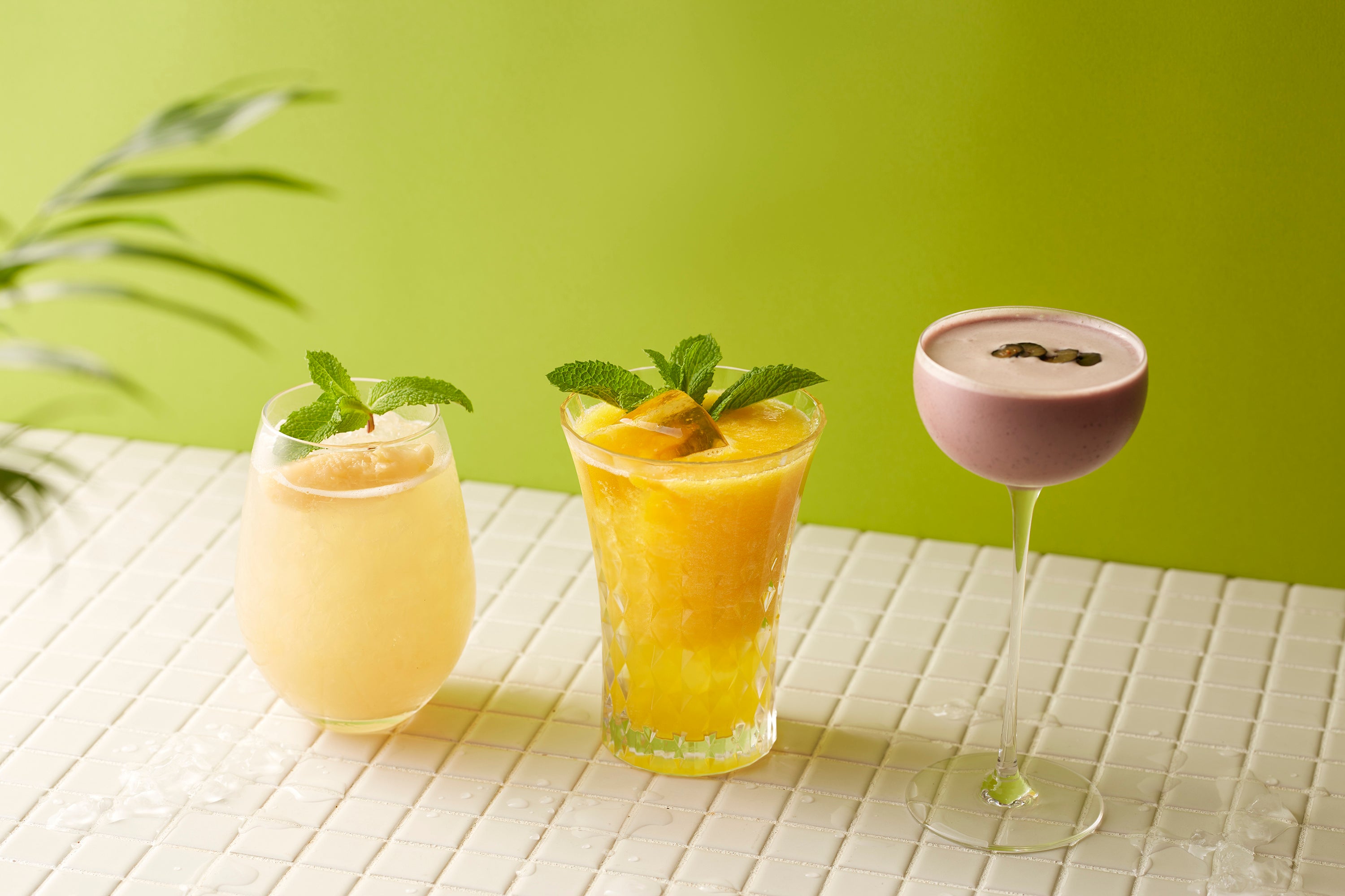 ・パッションフルーツとマンゴーのラムコリンズ(写真中央)