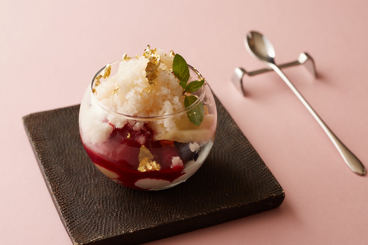 バーで楽しむ“締めパフェ”がかき氷仕様で登場。桃のカクテルをイメージした大人のデザート