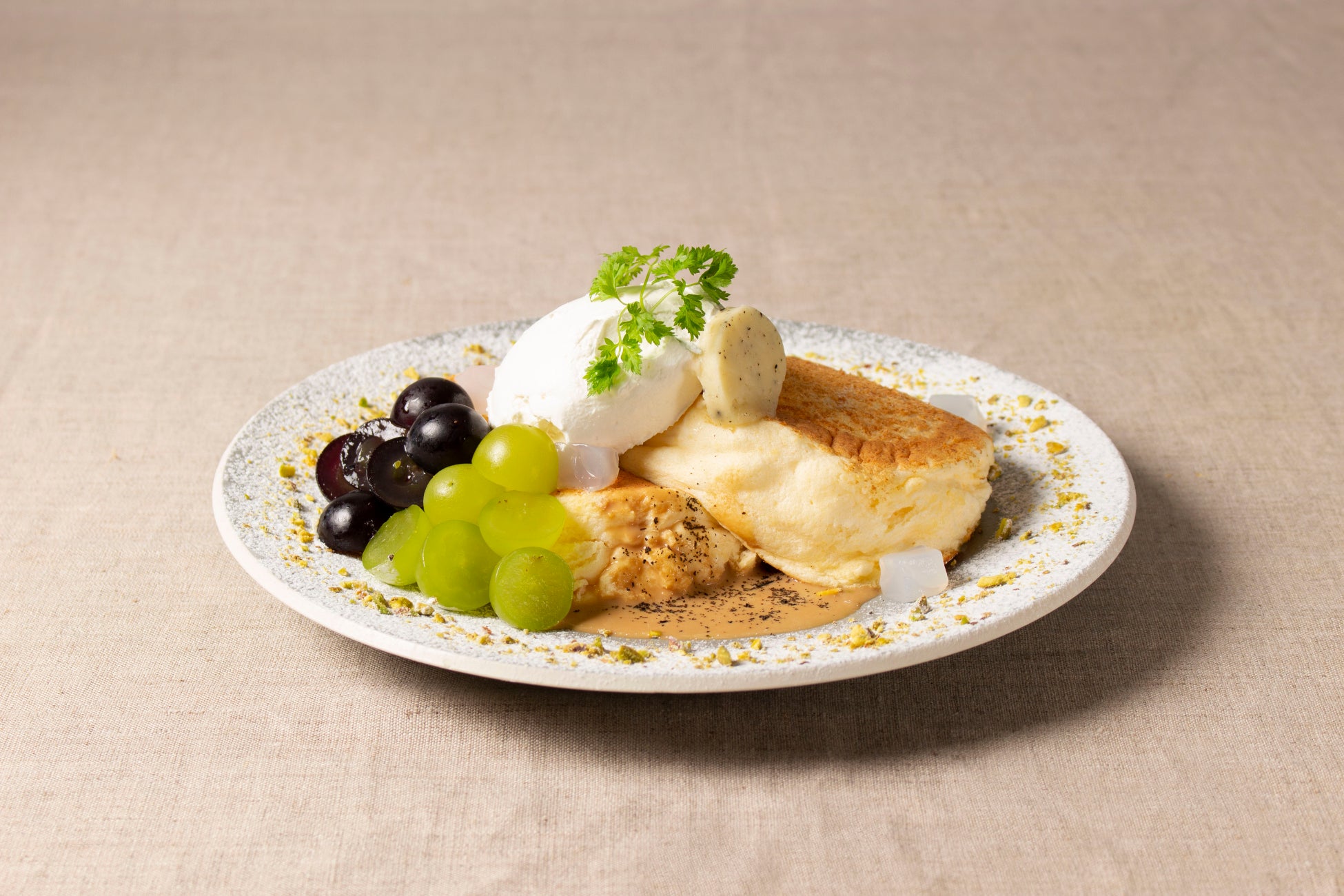 ・9/1(金)~10/15(日)『”Milk tea-White”シャインマスカット&巨峰のミルクティーパンケーキ』