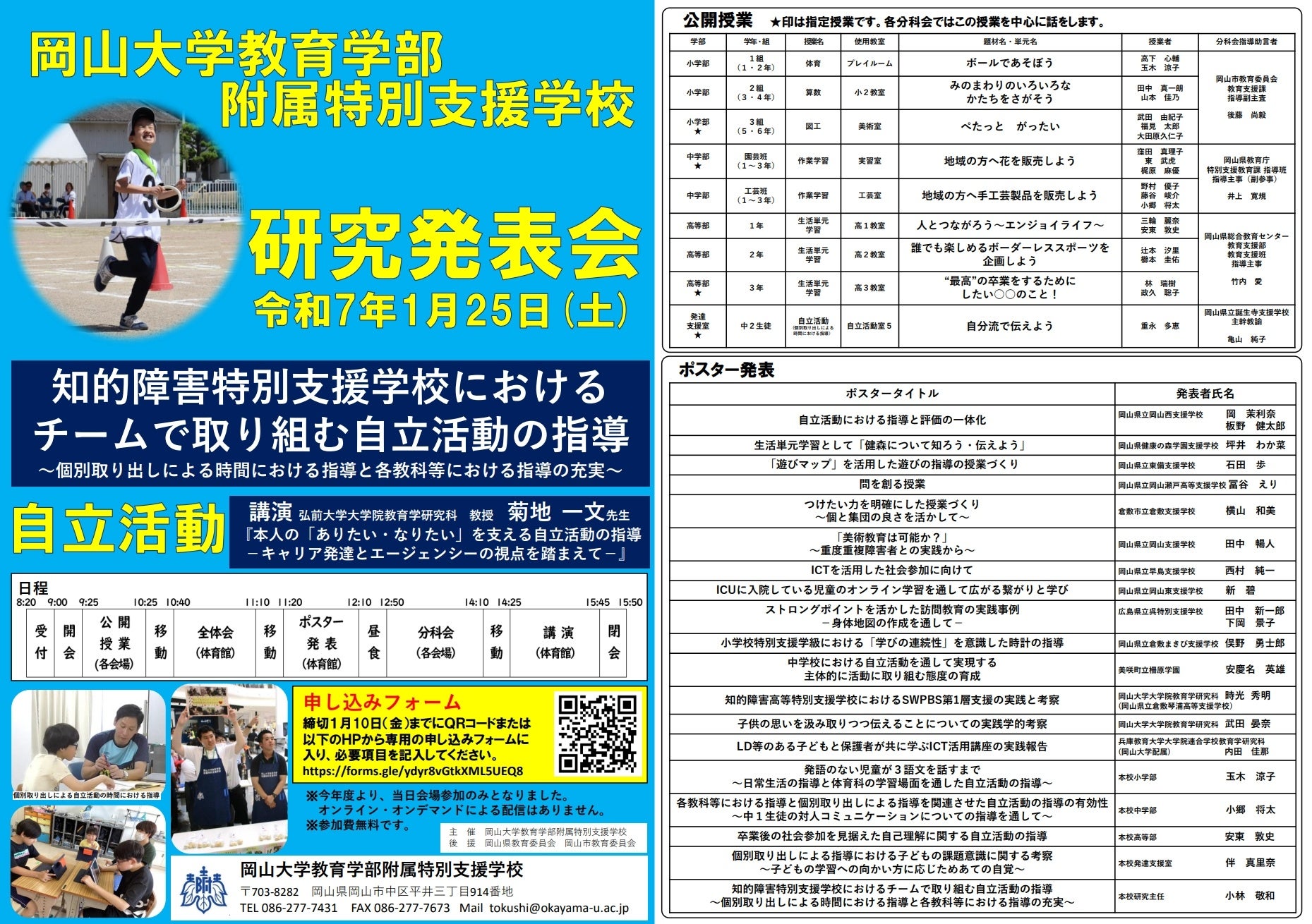 【岡山大学】岡山大学附属特別支援学校研究発表会「知的障害特別支援学校におけるチームで取り組む自立活動の指導~個別取り出しによる時間における指導と各教科等における指導の充実~」〔1/25,土〕