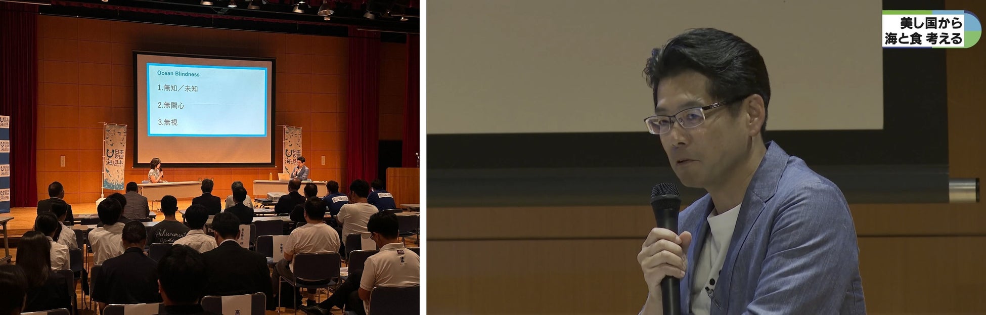 日本だけでなく世界で活躍している日本財団常務理事の海野光行氏と、地方創生がライフワークのフリーキャスター伊藤聡子さんによるトークセッションが、Ocean Blindnessの視点のもと繰り広げられました。