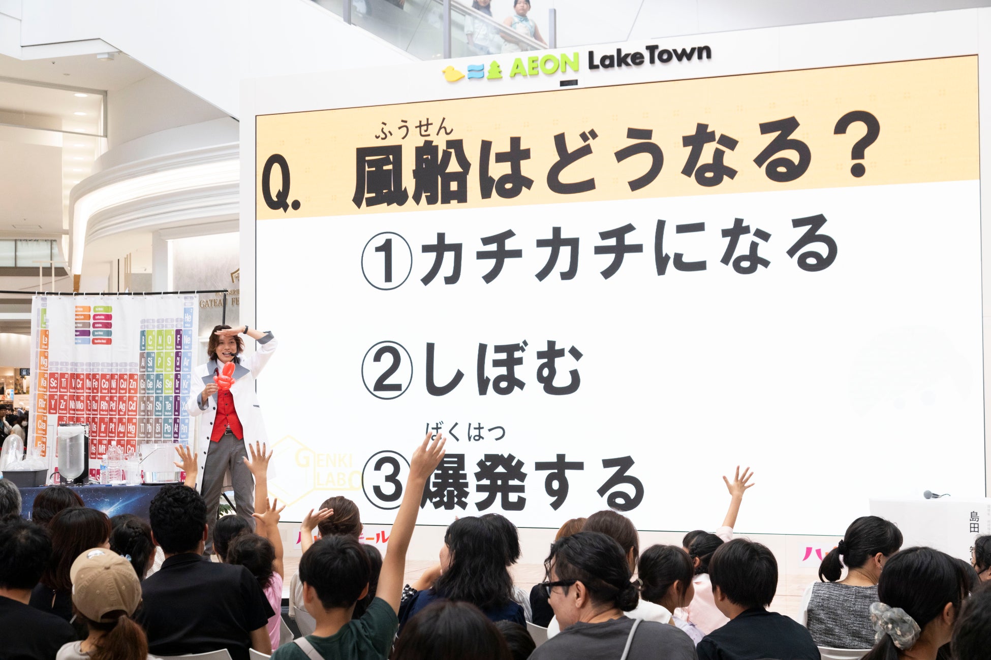 2024年9月22日(日)に埼玉県・越谷市のイオンレイクタウン kaze で行われた 『イオンサステナキャンパス MYボトルデザインコンテスト授賞式』では、科学雑誌『子供の科学』100周年アンバサダーのサイエンスアーティスト・市岡元気先生によるサイエンスライブも開催。会場はもちろんオンラインでも多くの方が参加した。