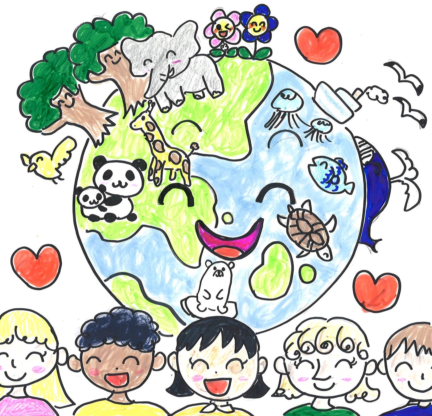 子どもの部の作品は、カラフルな色使い、カメレオンの尻尾が地球を守っているデザイン性に魅力を感じました。大人の部は絵が非常に上手。情景から自然の音が聞こえてくるようなインパクトがある絵です。
