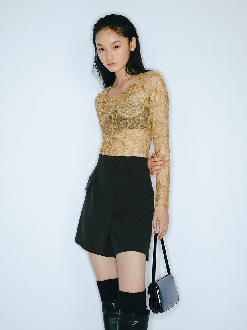 ビスチェ風の切替がポイントのシアーチュールカットソー。程良いフィット感でボディラインが綺麗に見せてくれる。
