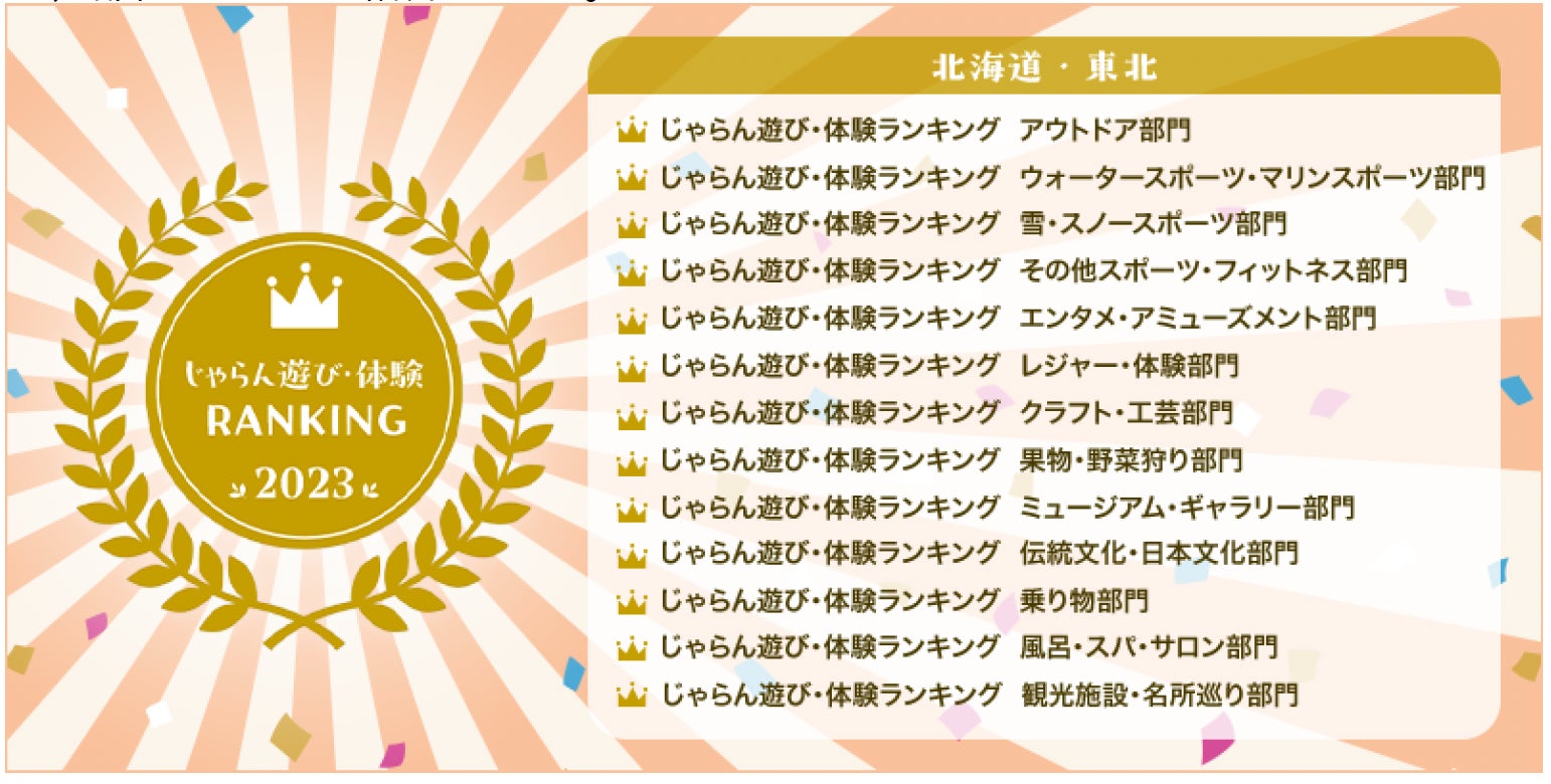 2023年、多くのお客様から支持された遊び体験施設を表彰 「じゃらん遊び・体験ランキング」北海道・東北ブロック発表