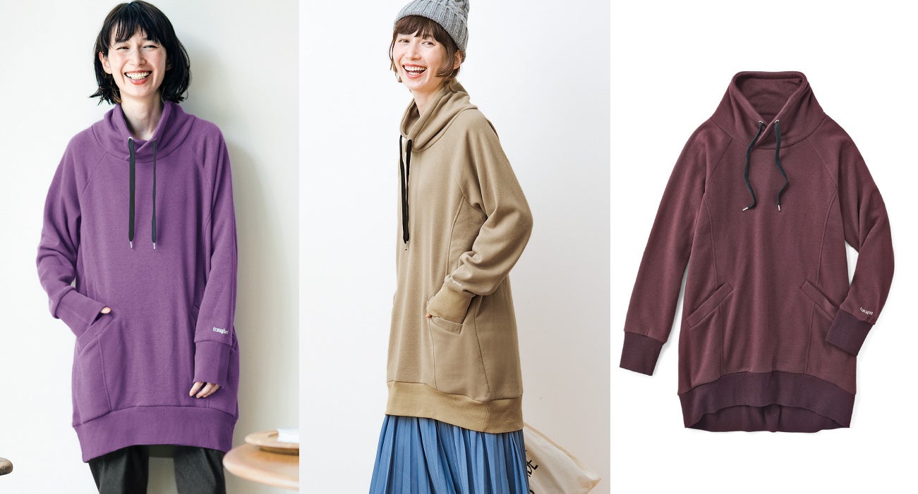 フェリシモ「frauglatt[フラウグラット]」から2022年の秋冬のあったか新作アイテム「大判スヌード」や「パーカー風のハイネック裏起毛チュニック」が新登場