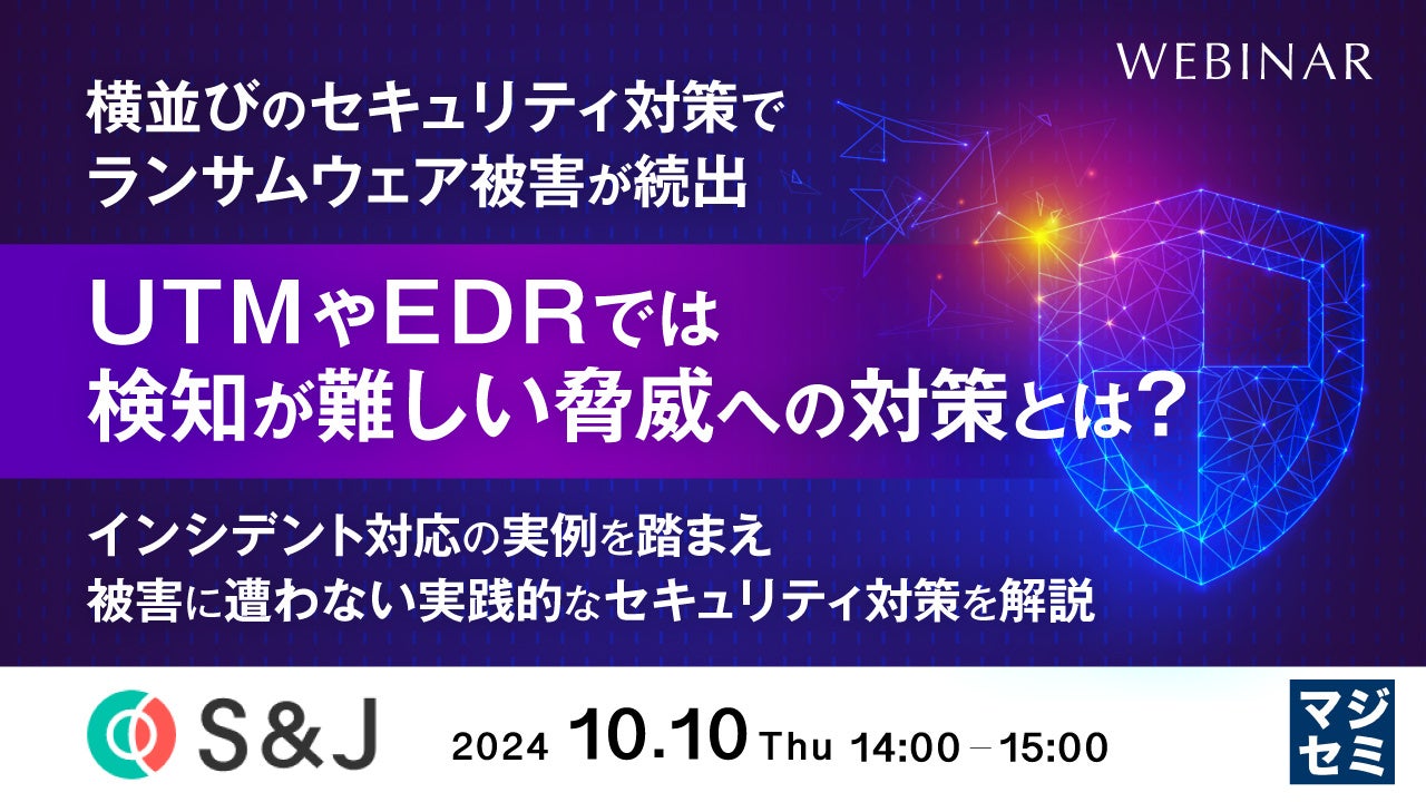 マジセミ株式会社は「横並びのセキュリティ対策でランサムウェア被害が続出UTMやEDRでは検知が難しい脅威への対策とは?」というテーマのウェビナーを開催します。