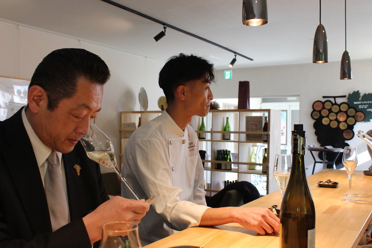 「140年の時を超えた新たな挑戦をするおふたりの話を聞いて感動しました。そんなおふたりとコラボレーションできること、光栄に思います。アンワイナリーの名前の由来でもある、赤毛のアンのストーリーやシーンを僕なりに解釈し、素材を生かしたシンプルな料理をモダンに仕上げますので、ぜひご堪能していただき、素敵な夜をお過ごしください。」