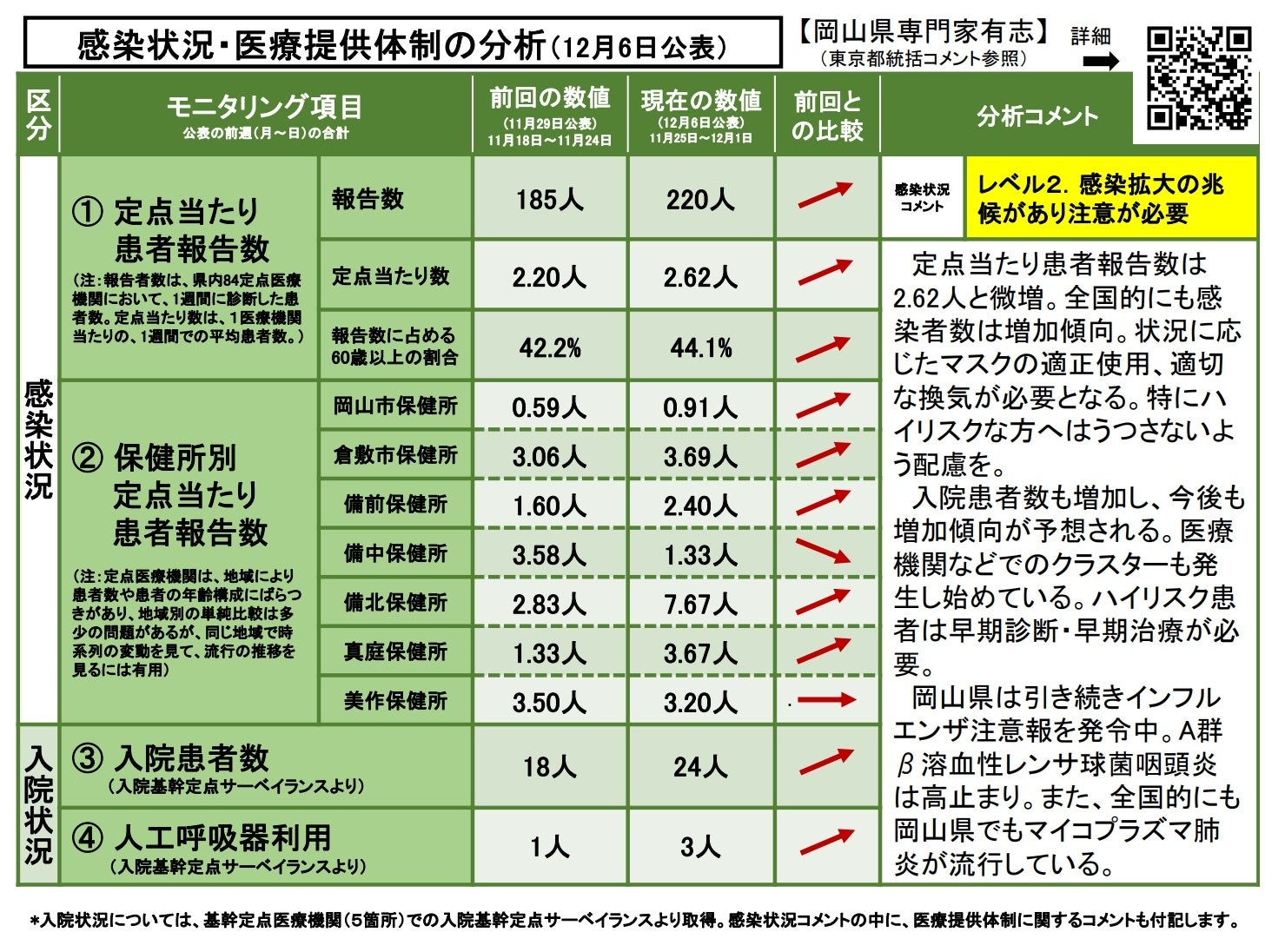 【岡山大学】岡山県内の感染状況・医療提供体制の分析について(2024年12月6日現在)