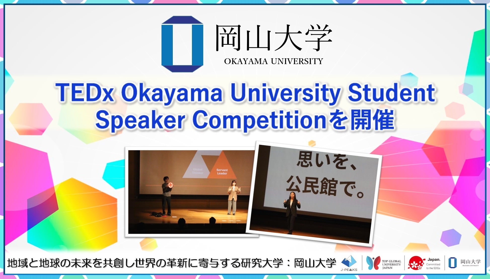 国立大学法人岡山大学(本部:岡山市北区、学長:那須保友)は、2024年11月24日、本学津島キャンパスの岡山大学創立五十周年記念館金光ホールにて「TEDxOkayama University Student Speaker Competition」を開催しました。