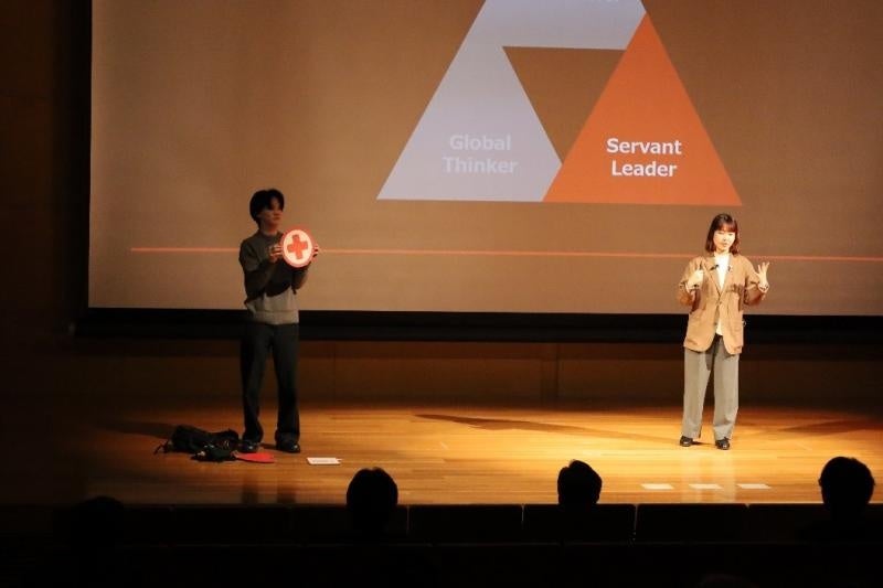 開会のあいさつでは、那須学長が先日対談を行ったアーティストのAIさんの曲を引用し、参加者に向けて「自分が主人公となり、行動を起こし、自分の選んだ道を正解にできるよう努めてほしい」と激励の言葉を贈りました。