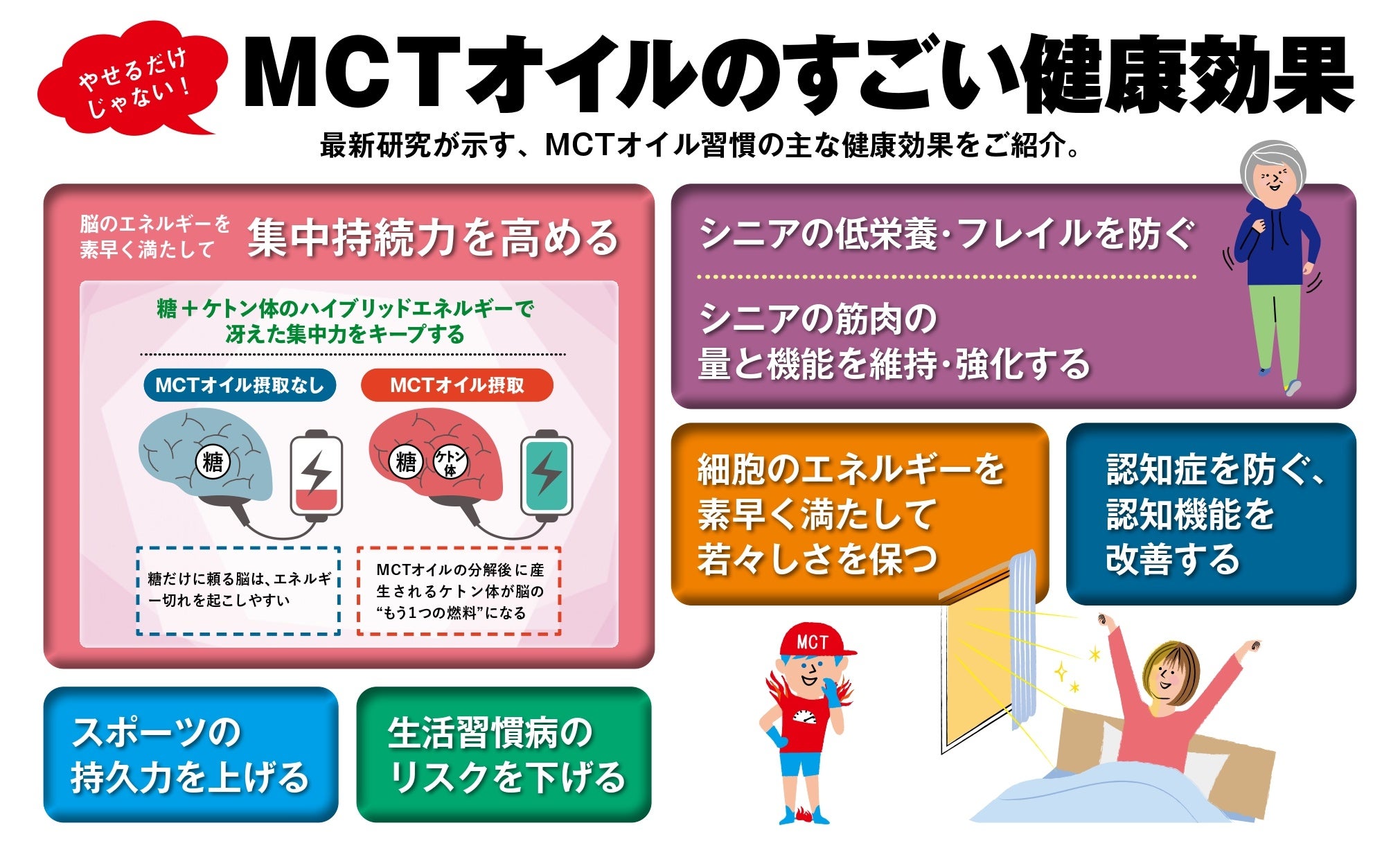 「若々しさを保つ」「脳のエネルギーとなり集中持続力を高める」「認知症を予防する」「スポーツの持久力を上げる」「生活習慣病のリスクを下げる」などの研究報告も確認されています。