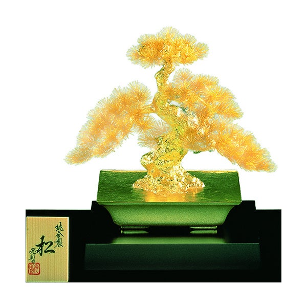 松の象徴である「不老長寿」を純金で表現し、永遠の美しさを保ちます。重厚感と品格を兼ね備え、インテリアとしても存在感を放ちます。