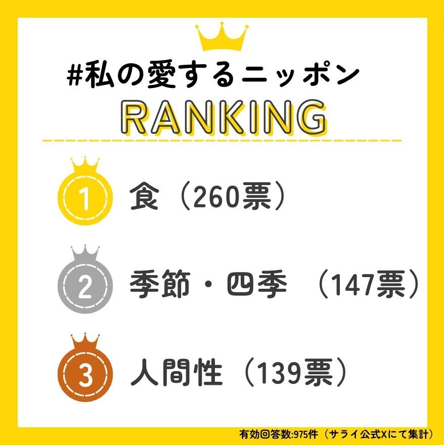 そんな中、雑誌『サライ』(小学館刊)の公式X(旧Twitter、@seraijp)アカウントにて、日本人が考える日本の魅力を投稿していただくキャンペーン「#私の愛するニッポン」を2024年6月12日から7月10日まで実施しました。