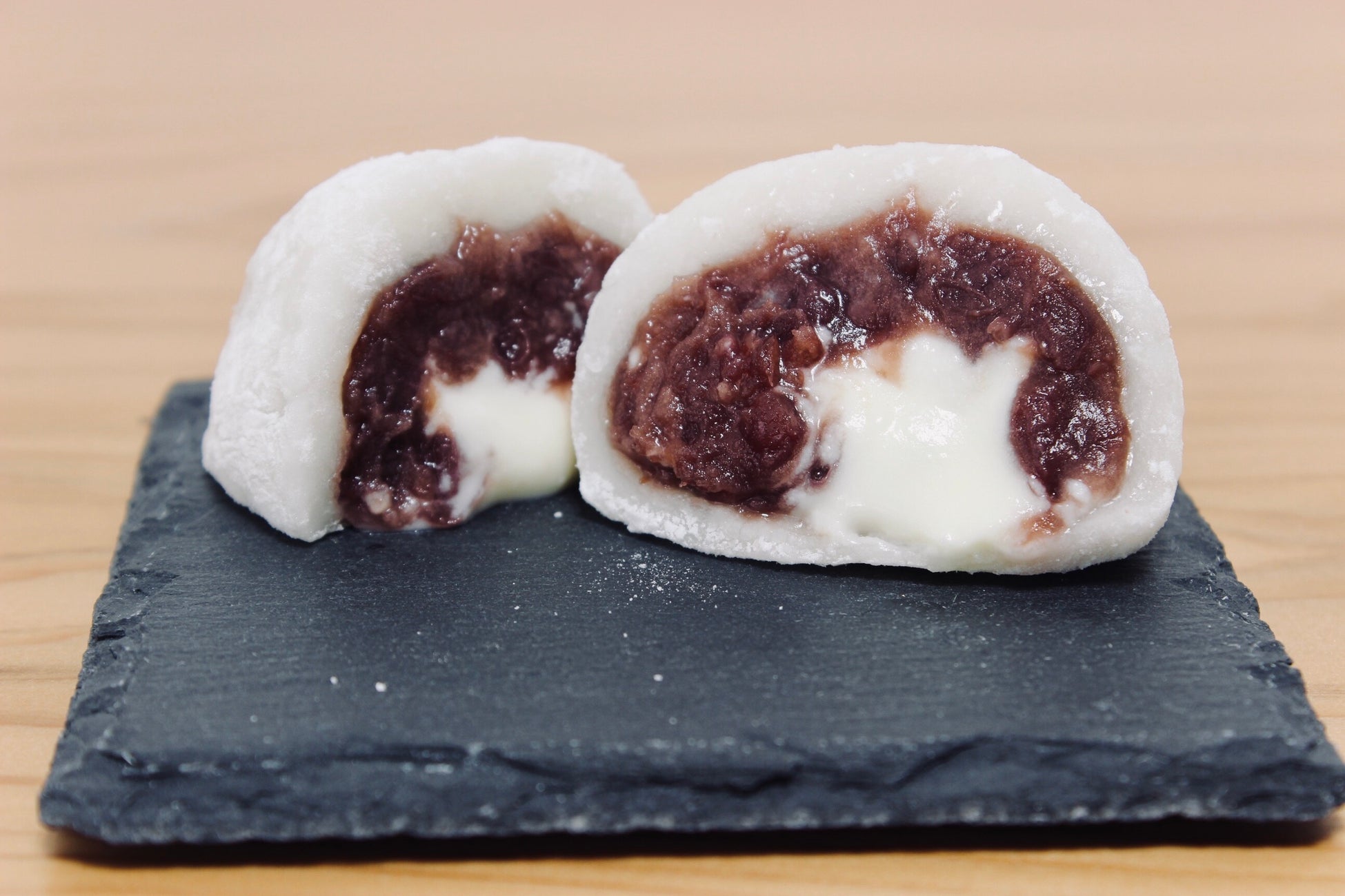 国産の餅粉を使用した餅生地に北海道十勝産小豆の粒餡と自家製マスカルポーネチーズクリームを合わせました。