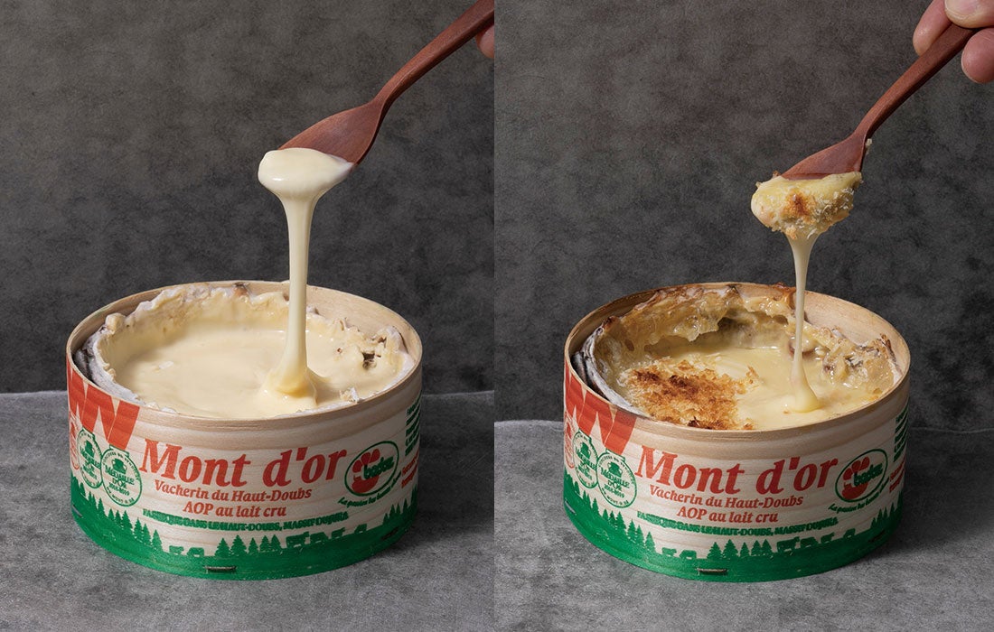 フランスとスイスの国境付近にあるジュラ山脈で生産される季節限定のチーズ。スプーンですくって食べることができるほど、なめらかで柔らかいウォッシュチーズです。子どもから大人まで楽しめる、まろやかな味わいが特徴です。