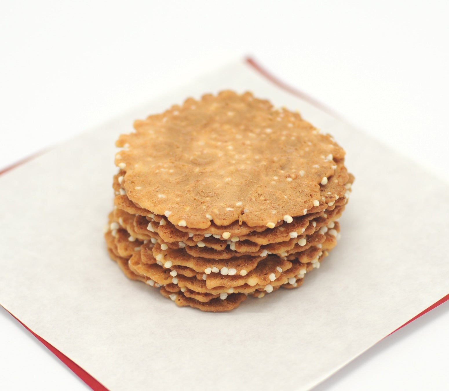 古代のチーズである蘇を隠し味に道明寺粉を焼き込んだ薄焼き煎餅。