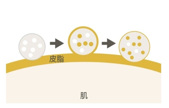 皮脂吸着パウダーには無数の孔が存在。球状で多孔質なため、皮脂をよく吸着する、サラサラな使用感。