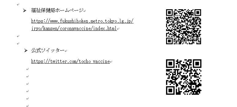 ワクチン接種会場の最新情報等は、福祉保健局ホームページ及び公式ツイッター「東京都設置 ワクチン大規模接種会場」でご確認下さい。