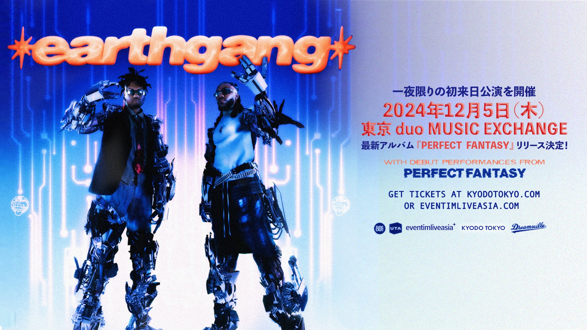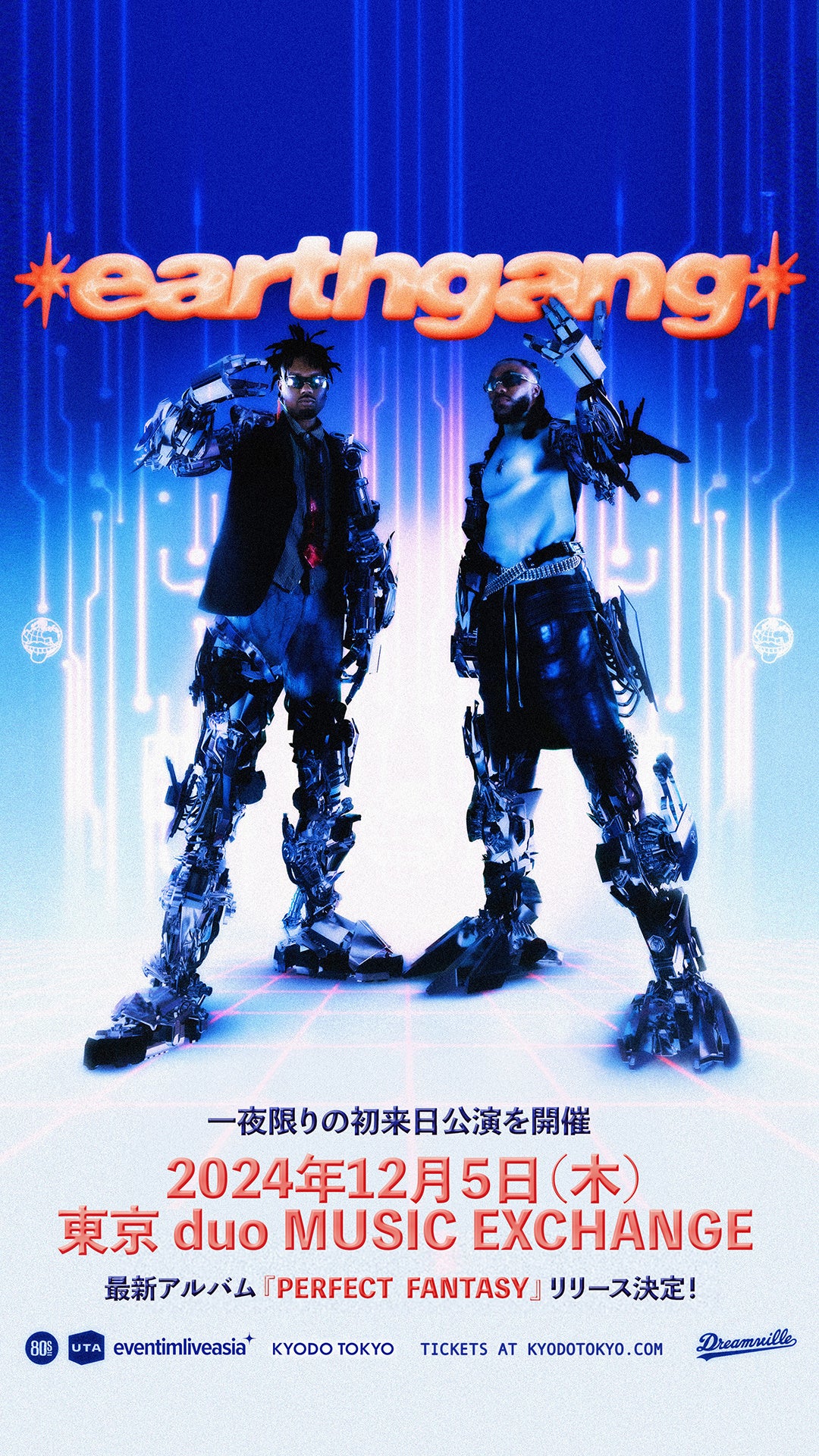 そんな現代のヒップホップ・シーンにおいて一際輝きを放つ彼らが、この度最新アルバム『PERFECT FANTASY』を近日リリースする事が決定。そしてそれに伴い、ファン待望の一夜限りとなる初来日公演 を東京で開催する。唯一無二のクリエイティビティとスタイルで、ブレイク必至の彼ら。今後さらに勢い を増すであろう EARTHGANG の貴重な初来日公演は見逃し厳禁!