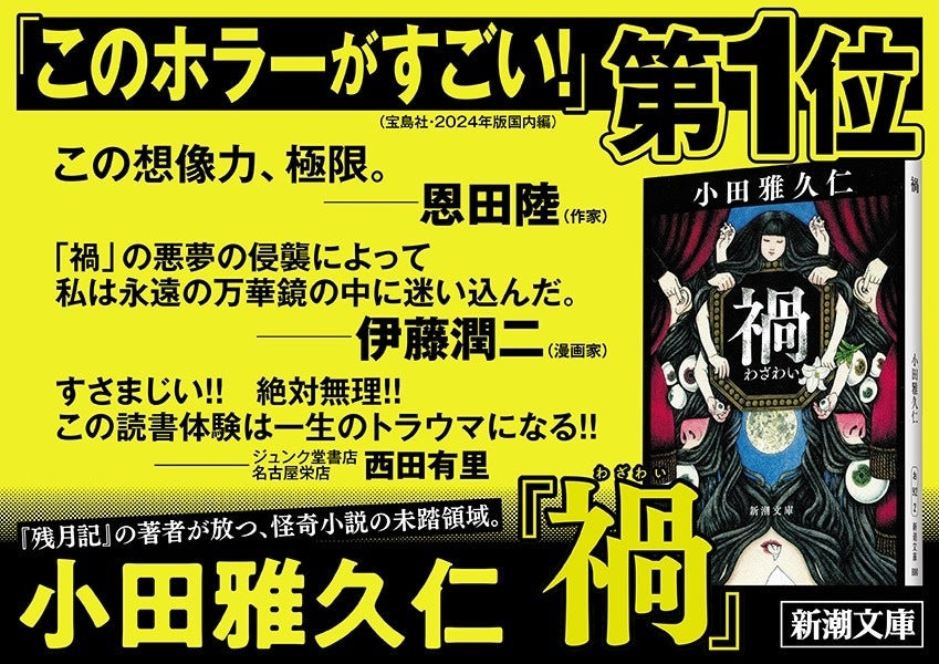 『このホラーがすごい!』第1位!(2024年版・国内編)。小田雅久仁『禍(わざわい)』新潮文庫より3月30日発売。