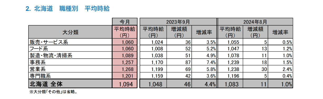 株式会社リクルート(本社:東京都千代田区、代表取締役社長:北村 吉弘)の調査研究機関『ジョブズリサーチセンター(JBRC)』(https://jbrc.recruit.co.jp/)が、2024年9月度の「北海道版 アルバイト・パート募集時平均時給調査」をまとめましたので、ご報告致します。