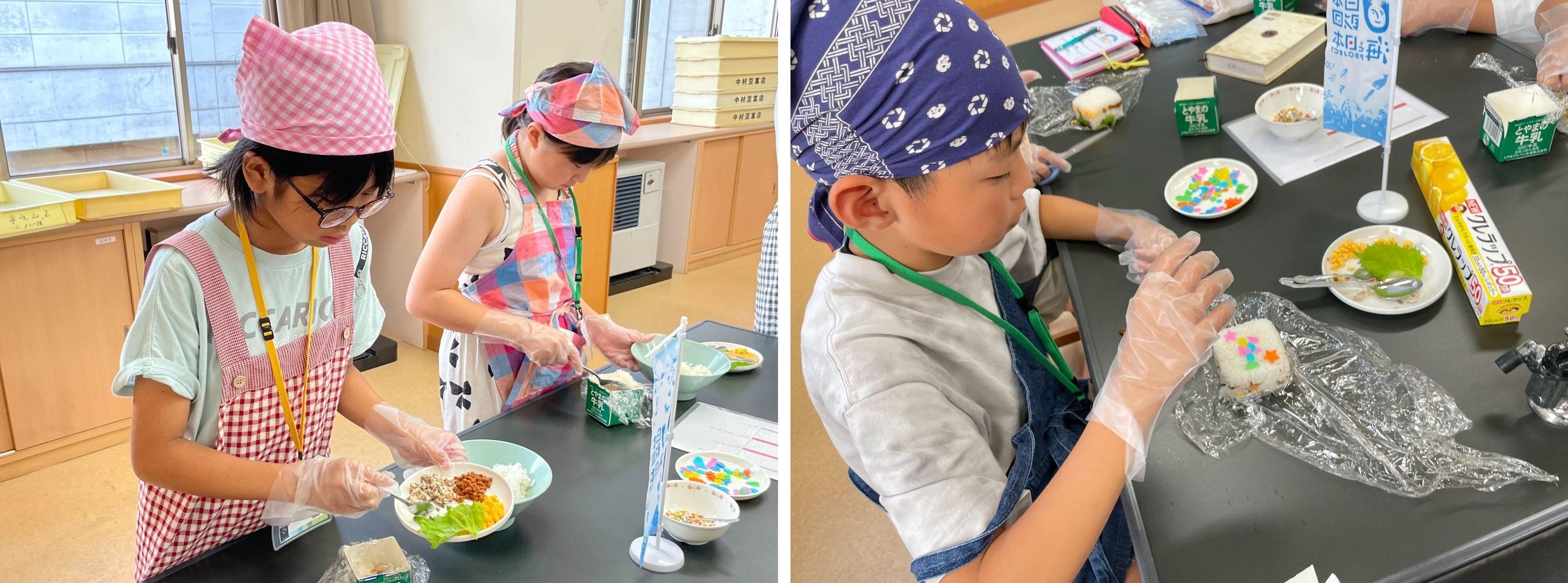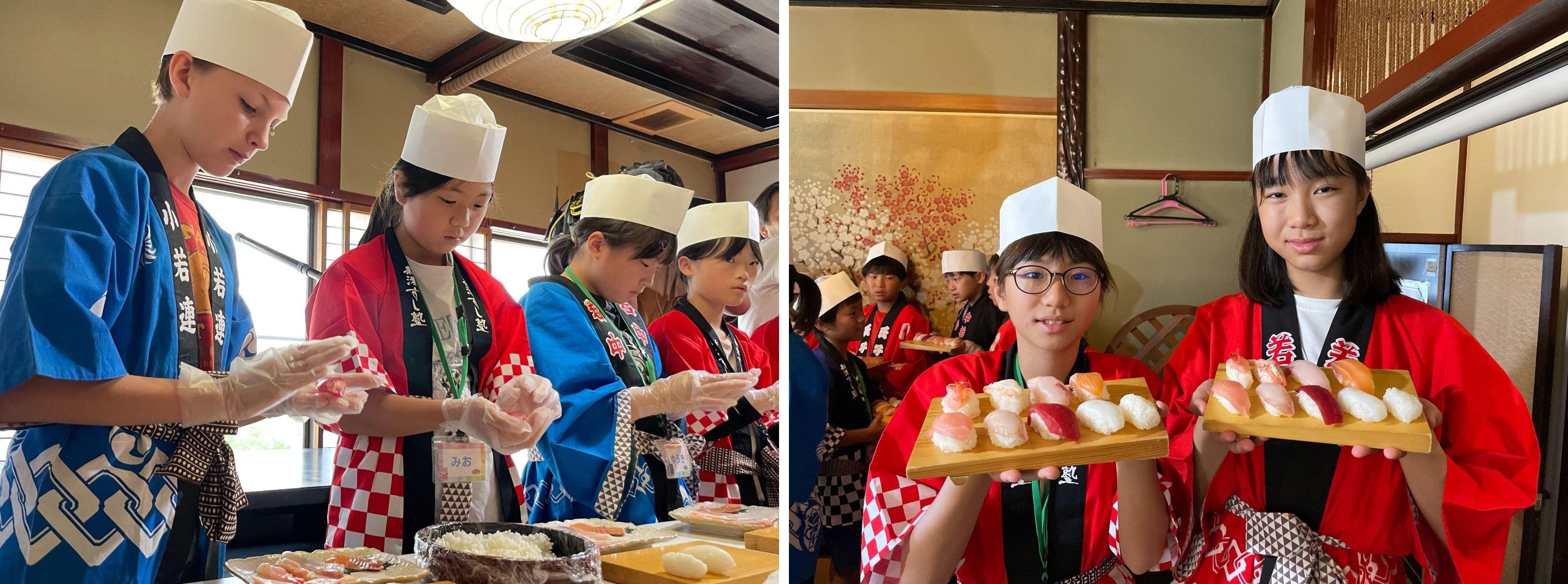 3日間ですしに関するさまざまなことを学んだ子どもたち。今度は職人になりきって、すしを自分で握ります!握り方を教えてくださったのは、新湊すし塾の坂橋さん。テーブルにはマグロ、イカ、サーモンなど、8種類のネタと酢飯が用意されました。坂橋さんがお手本を見せたあと、子どもたちも実際に握っていきます。シャリの重さを計って、握って、ネタをのせて…。手順通りにしないとシャリが崩れてしまうなど、普段何気なく食べている握りずしの技術の難しさを感じました。だんだん手つきも慣れていき、無事に握りずしが完成!握りたてを頬張る嬉しそうな表情が見られ、なかには「将来すし職人になりたい」と話す子もいました。