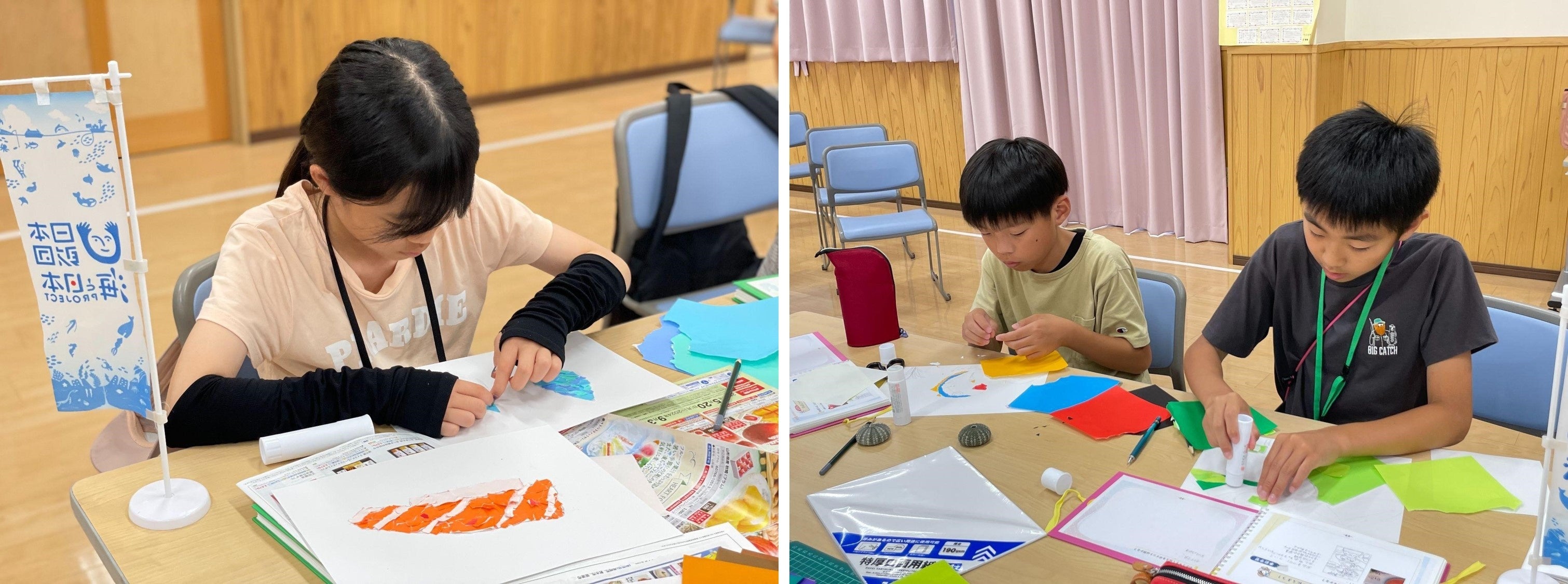 ・ちぎり絵では、富山の魚を代表するブリと白エビを担当しました。自分の作品が電車になって街を走るのが楽しみです。(小学5年生・女子)