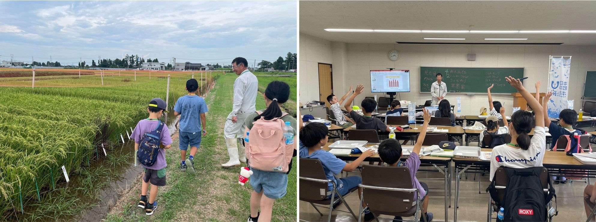 続いては「米」。富山米新品種の開発などに取り組んでいる富山県農業研究所を訪れました。米どころとして知られる富山県では、立山連峰からの豊かで清らかな水により、おいしい米が育てられています。とくに近年の猛暑にも耐えられる品種として開発された「富富富」は、冷めてもおいしいことが特徴だそうです。子どもたちは圃場の見学や米の食べ比べを通して、富山の恵まれた自然環境と、同研究所の職員や農家のたゆまぬ努力を知りました。