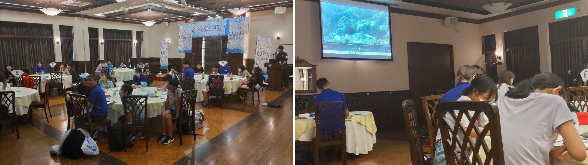 当初は平沢漁港鈴分港で水中ドローンを使用して海中の様子を観察したり岩場の岩盤清掃を予定していましたが、それぞれの活動動画を見て説明を聞きながらの学習に変更しました。
