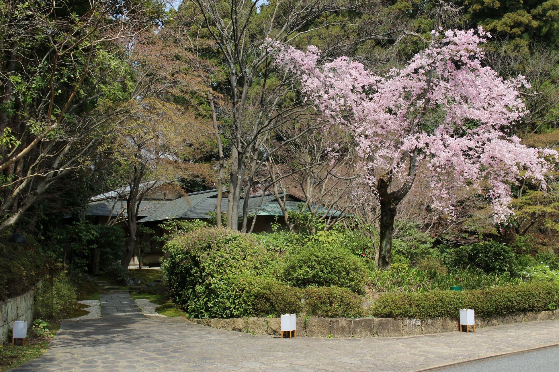 桜の季節には「茶寮」入口で山桜がお出迎えします。