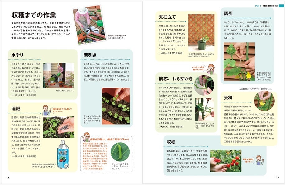 育て方は野菜によってさまざま。各野菜の知識を細かく学べる!