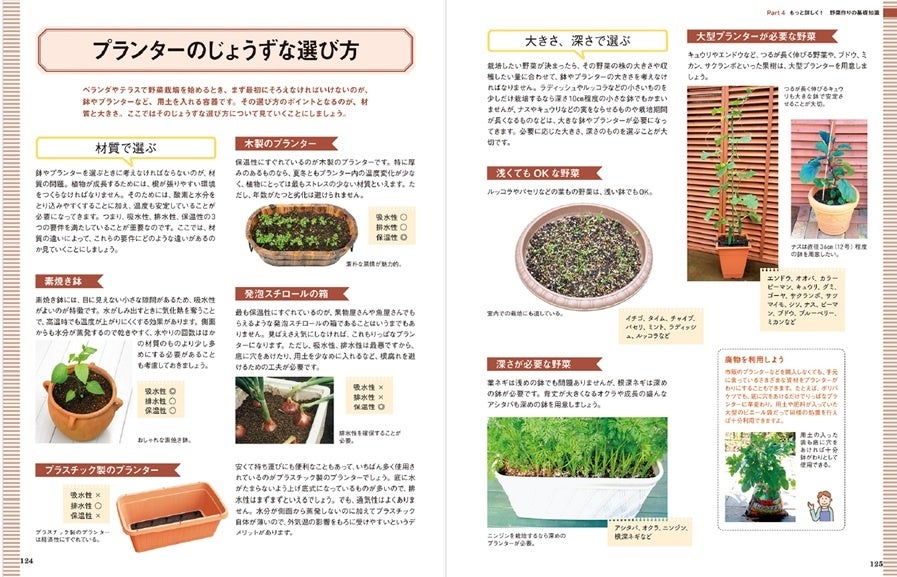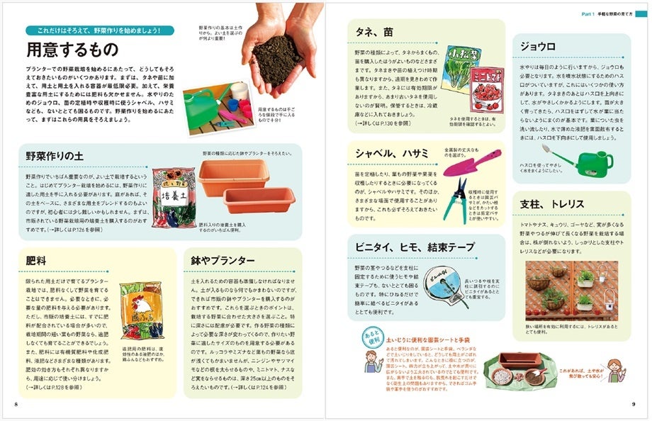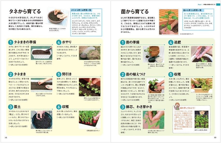 本書前半では、始めるまでの基本から野菜作りの一連の流れがわかり、後半ではもっと深掘りした野菜作りを解説。