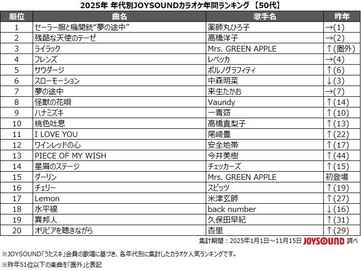 ▽特設ページ:2025年 年代別カラオケ年間ランキング