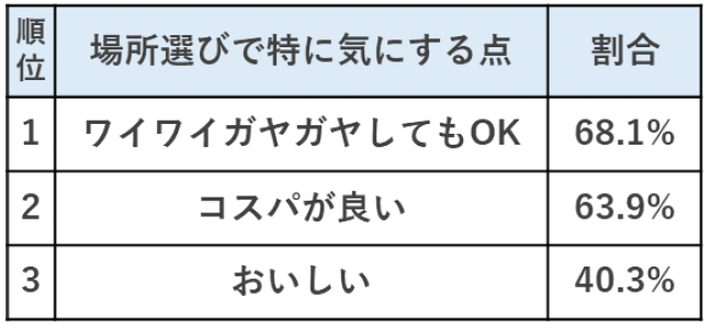 ■高校生に人気の打ち上げ場所は、“ワイガヤOK”で“コスパが良く”“おいしい”がカギ!