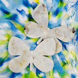 対馬市に流れ着いた白い海ごみ(主に発泡スチロール)をアップサイクルして作ったものです。
