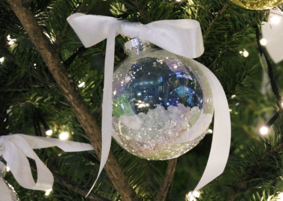 ツリーで輝くオーナメントは、対馬市に流れ着いた白い海ごみ(主に発砲スチロール)をアップサイクルして作り、海ゴミ問題の現状を伝えました。