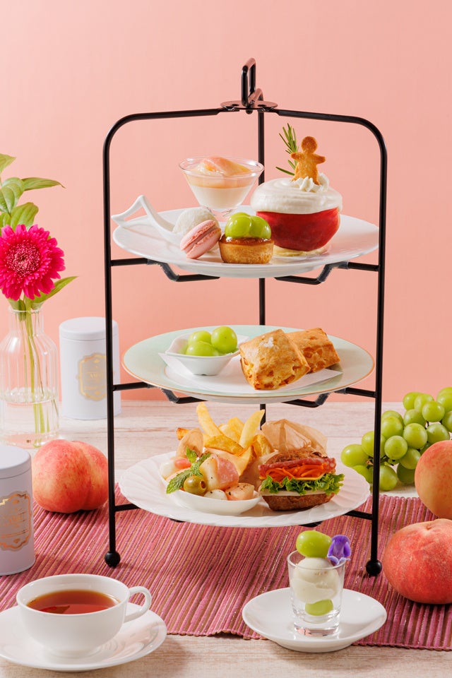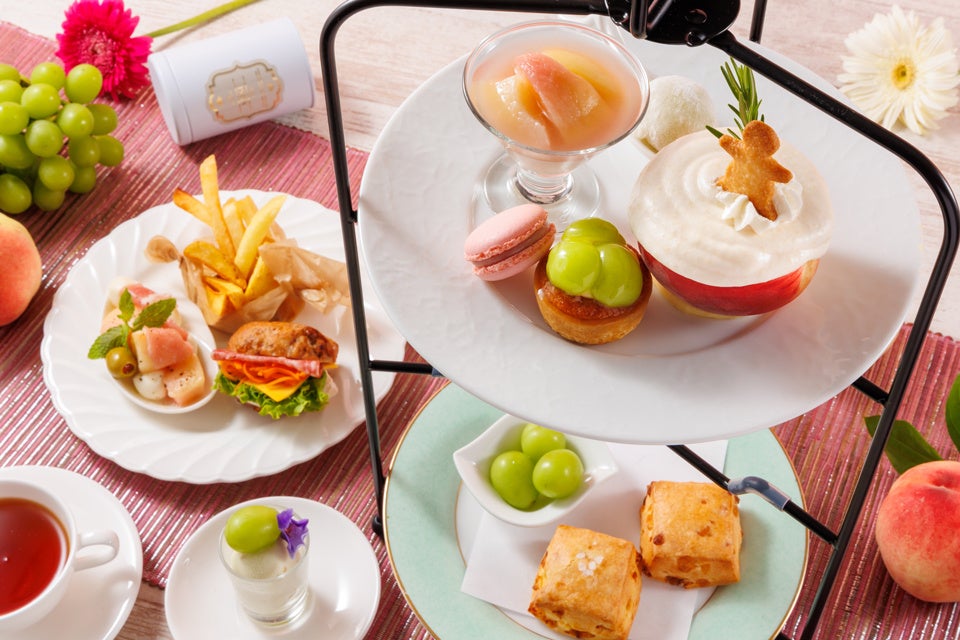 桃をまるごと使用したスイーツや大粒で芳醇な香りのシャインマスカット。桃とシャインマスカットに恋する夏のアフタヌーンティー