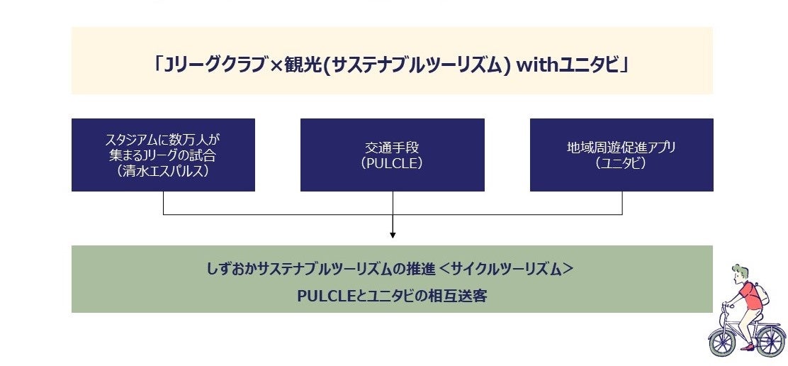 ② サッカー観戦&観光の情報アプリ「ユニタビ」と静岡市シェアサイクル事業 「PULCLE」(運営主体:株式会社TOKAIケーブルネットワーク)とで、以下のコラボキャンペーンを実施。相互送客を図るとともに、サイクルツーリズムの可能性を探索