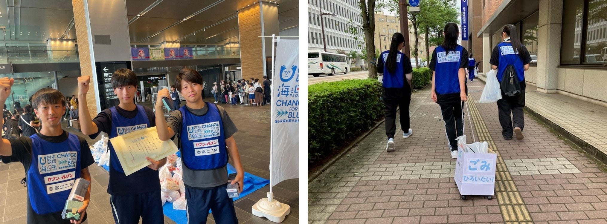 今大会の舞台は富山駅。多くの人が行き交う中、スポGOMI甲子園を開催しました。一見きれいに見える富山駅周辺にも多くのごみがありました。開会式では選手宣誓を務めた富山国際大学付属高校3年生の「ピーチガール」が、「きれいな富山湾を守り、未来につなげることを誓います。」と力強く宣誓。この大会を通じて、未来を想像し行動できる人を一人でも増やし、一人ひとりの心がけから海洋ごみ削減に貢献していくことを期待したいです。