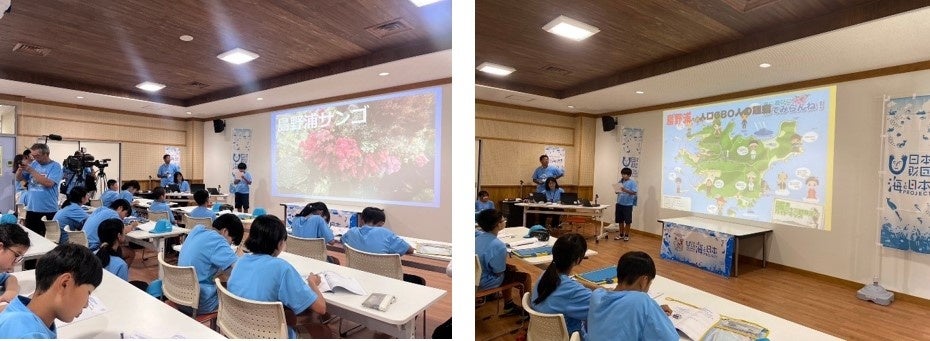 また、島野浦学園の児童たちは、「島浦の自然環境と保全」というテーマでごみ拾いや、島の環境を守るための啓発ポスターを制作し、高速船乗り場に掲示していることを紹介。このように、児童たちは「島浦のよさを味わい、課題をつかむとともに、島で育ち、島とかかわりながら生きていく一員として、地域に貢献したいという思いをもって取り組んでいる」と話しました。