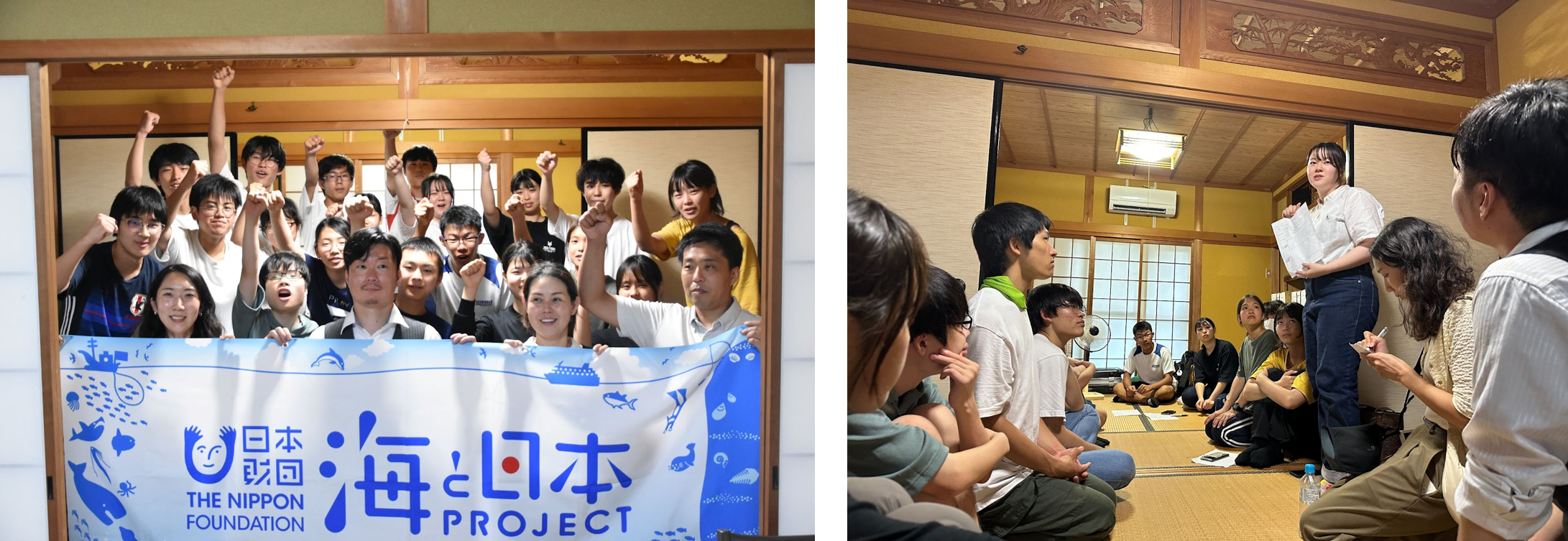 夕食前には、二木島の歴史に触れる「二木島ウォーク」を実施しました。神社と神武天皇神話、昭和19年に起きた東南海大地震における津波を伝える石碑、熊野古道の散策、くじらの供養塔を巡りました。高校生たちは、漁村に残る歴史と文化に関心を高めていました。